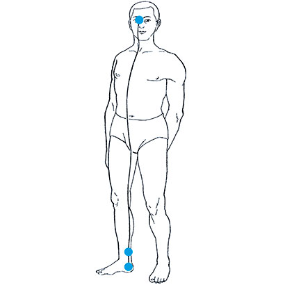 Jinová párová dráha. Je sdružena s dráhou ledvin. Začátek má pod vnitřním kotníkem v bodě L-2, jde souběžně s s dráhou ledvin až k vnitřnímu koutku oka, kde se spojuje s dráhou močového měchýře a meridiánem jangovým patním.
