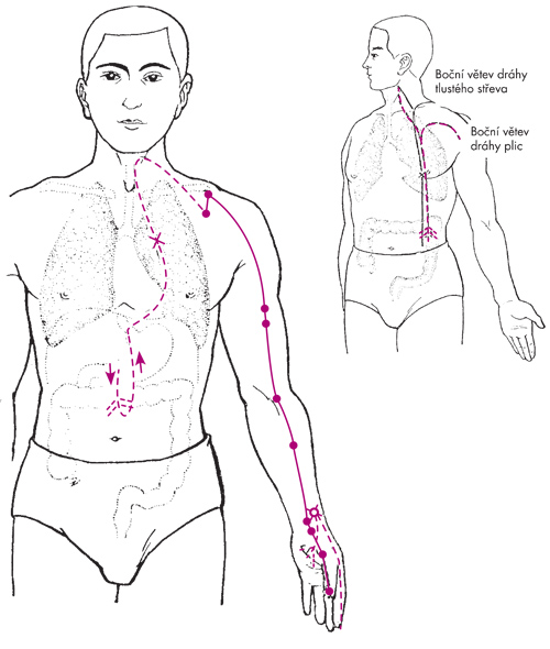 Obecná charakteristika jinová dráha probíhající sestupně od hrudníku k ruce