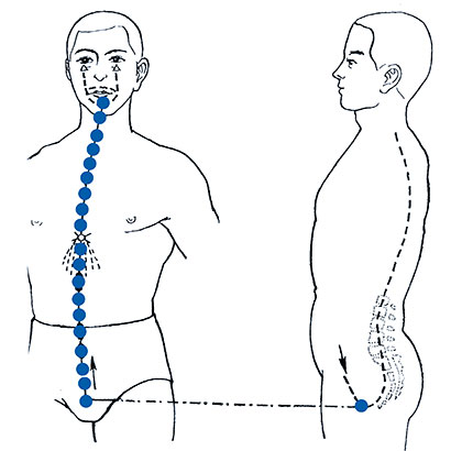 Poznámka: uprostřed brady leží bod první pomoci při hlubokém bezvědomí.